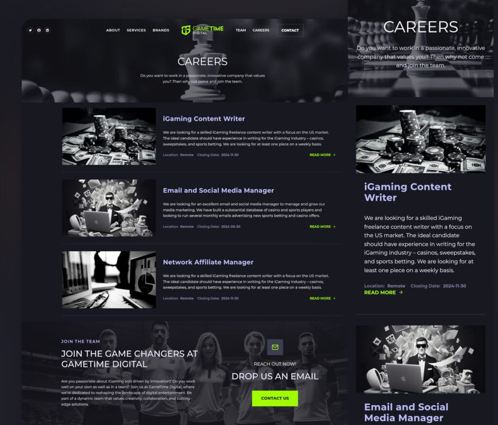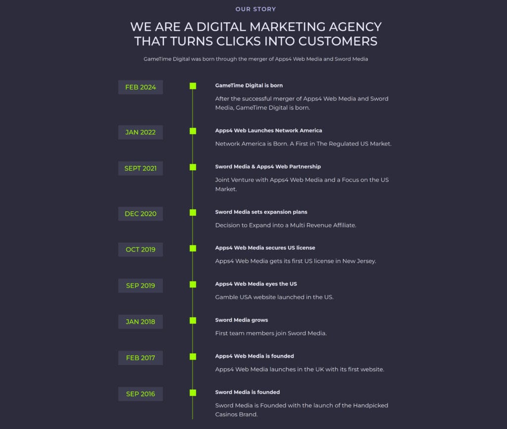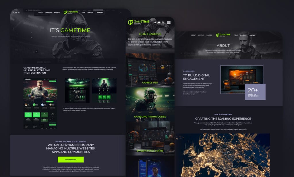 Game Time Digital was born from the merger of two established companies — App4 Web Media and Sword Media — and needed a new website that would unify their identity and position them as a major player in the US affiliate marketing and iGaming space.